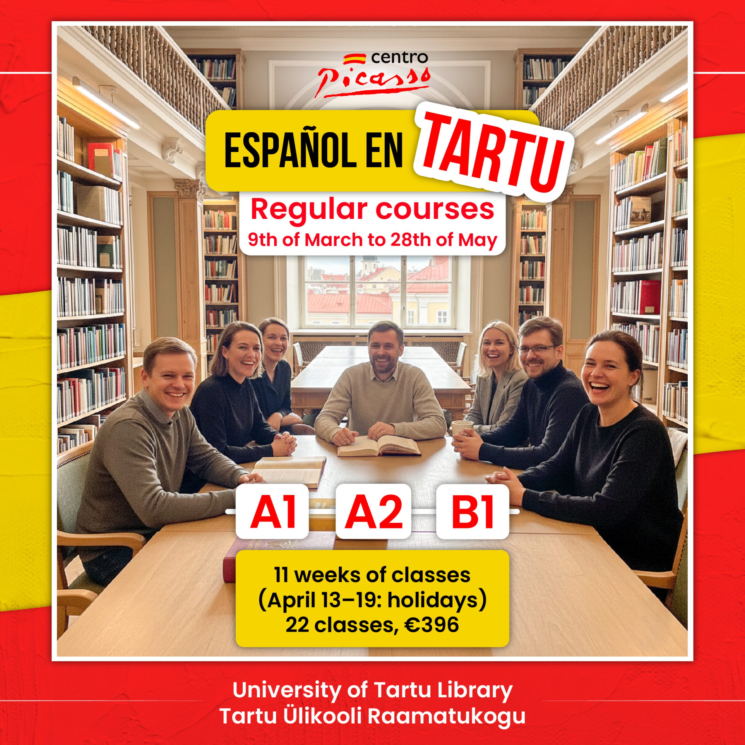 Centro Picassos korraldame kultuuriüritusi. Jutuks tulevad kõikvõimalikud teemad – Hispaania erinevad maakonnad, nende inimesed ja kombed, ajalugu, tänapäev – see on lisaks keelele üks hea viis Hispaaniaga lähemalt tutvust teha. Osavõtt meie õpilastele tasuta.